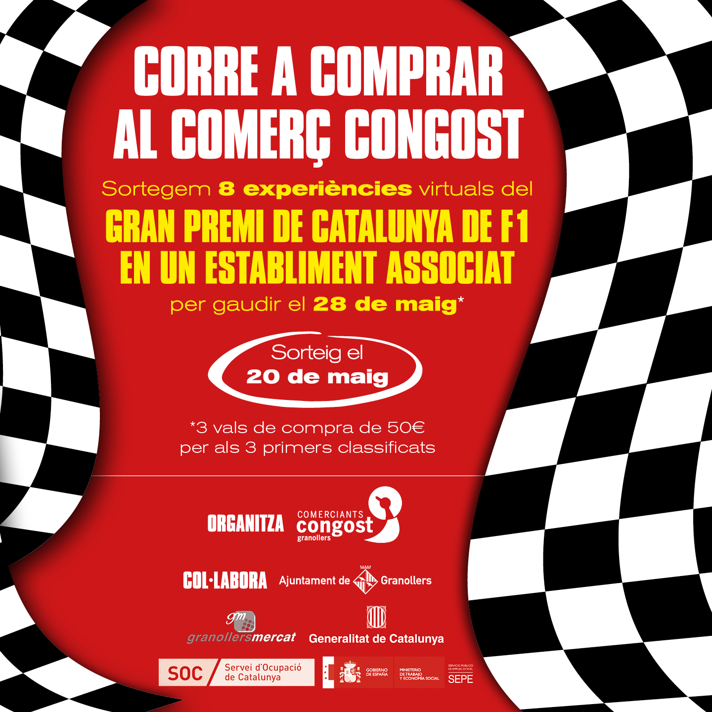 Del 2 al 19 de maig, els establiments comercials adherits a la campanya lliuraran butlletes als seus clients per compres realitzades per participar al sorteig de 8 experiències virtuals del Gran Premi de Catalunya de F1 en un establiment associat.