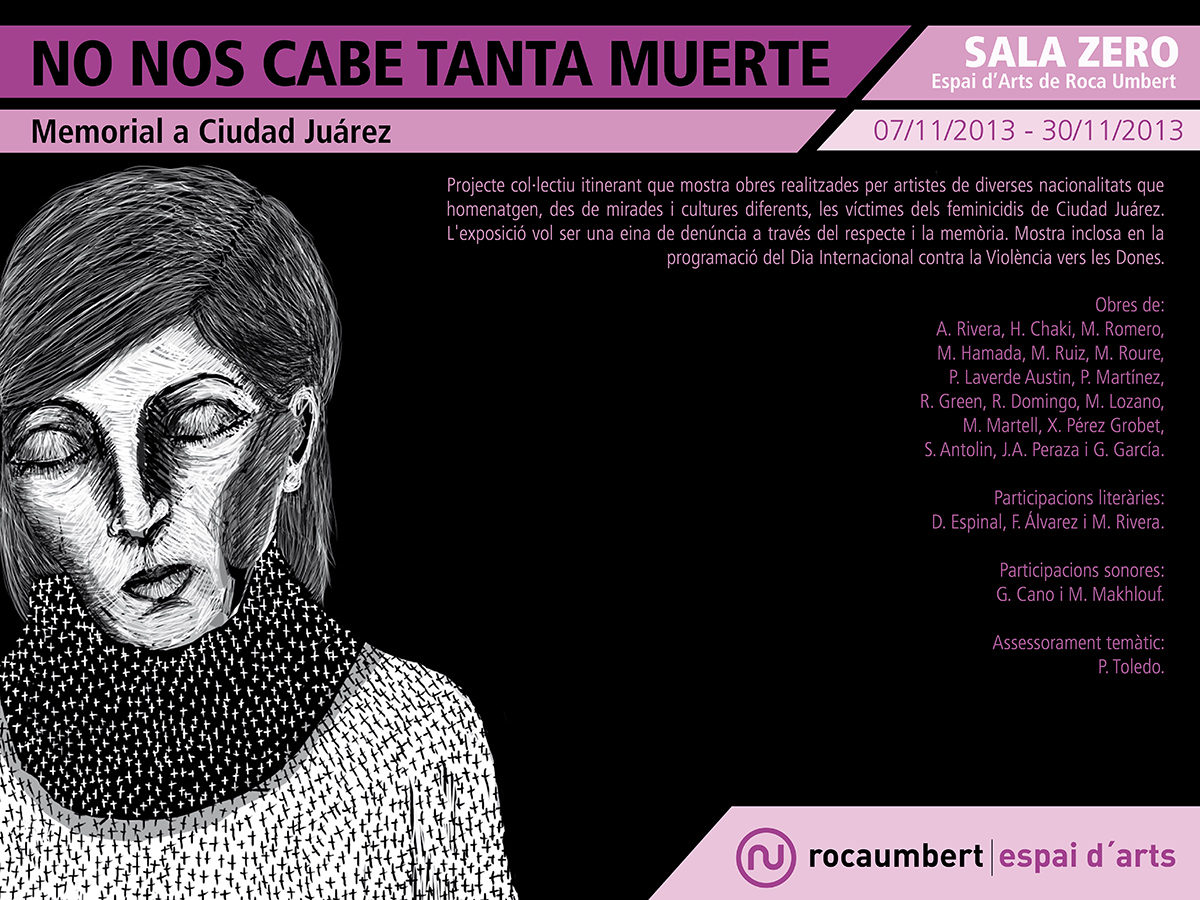 Projecte col·lectiu itinerant que mostra obres realitzades per artistes de diverses nacionalitats que homenatgen, des de mirades i cultures diferents, les víctimes dels feminicidis de Ciudad Juárez. L'exposició vol ser una eina de denúncia a través del respecte i la memòria. Mostra inclosa en la programació del Dia Internacional contra la Violència vers les Dones.