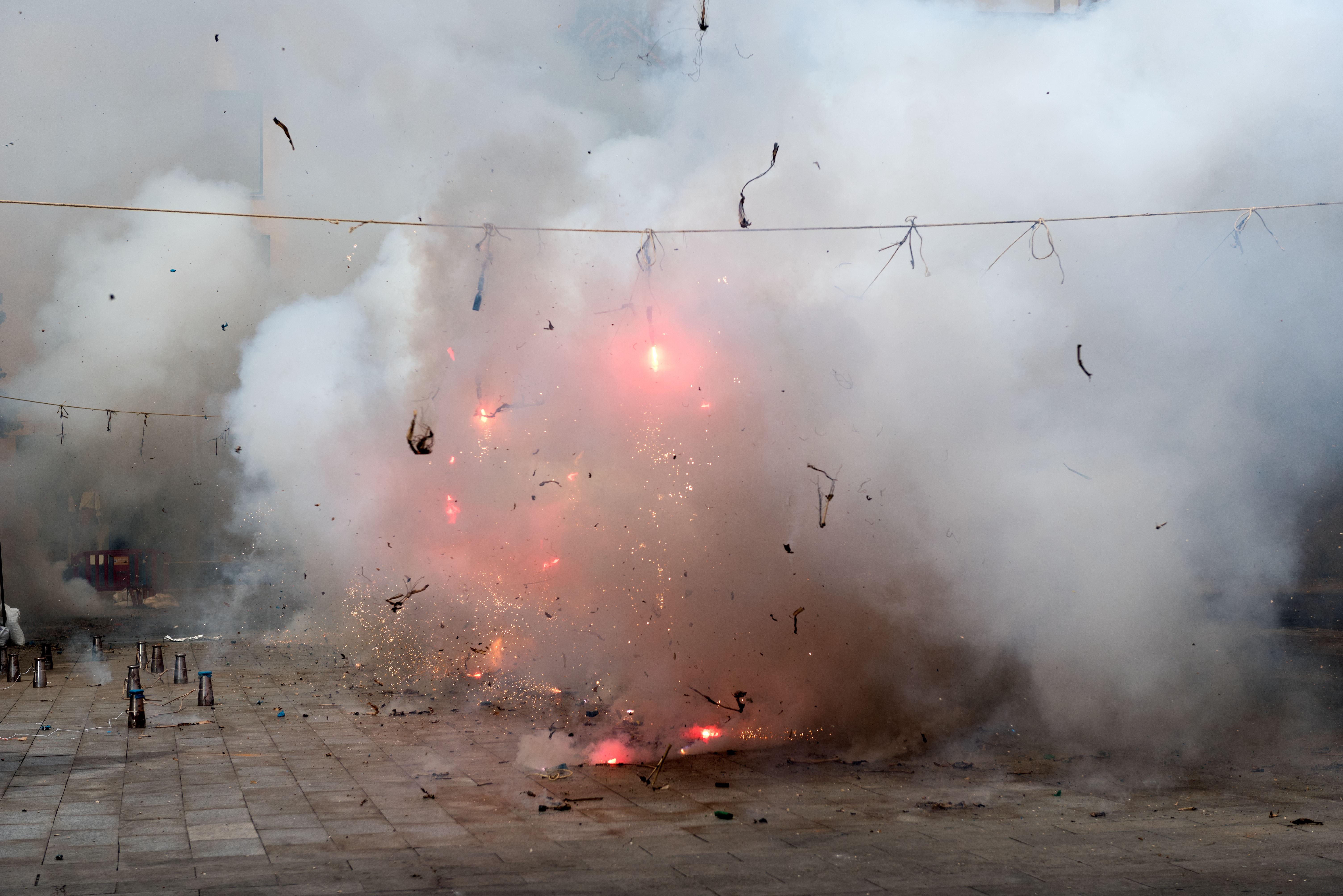 Tronada de migdia a càrrec de la pirotècnia guanyadora del premi especial "FM Granollers - Trofeu Blancs i Blaus" del “Concurs Internacional de Focs Artificials Ciutat de Tarragona"