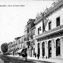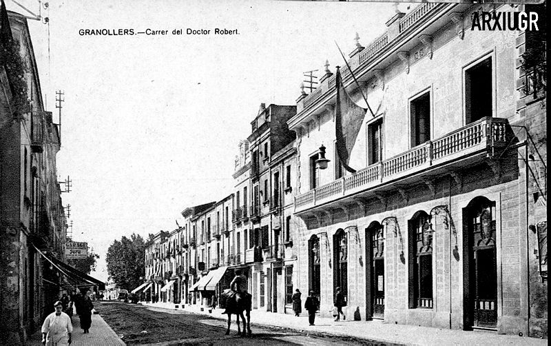 Foto: Carrer de Josep Anselm Clavé, aleshores anomenat del Doctor Robert. En primer terme, l'edifici de la Unió Liberal, que, entre altres seccions, acollia l'escola; actualment hi ha el Museu de Granollers / Autoria desconeguda / Col: Ajuntament de Granollers / AMGr