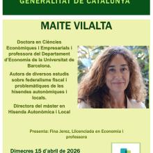 Conferència amb Maite Vilalta sobre el nou model de finançament de la Generalitat de Catalunya i els reptes de les hisendes autonòmiques i locals.