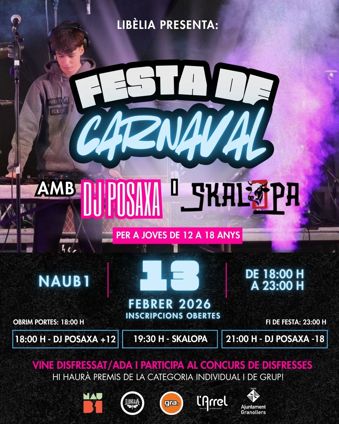 Gràcies a aquesta votació, el 13 de febrer arriba la Festa de Carnaval de Libèlia a la Nau B1, amb DJ Posaxa i SKALOPA posant la música de 18.00 h a 23.00 h.