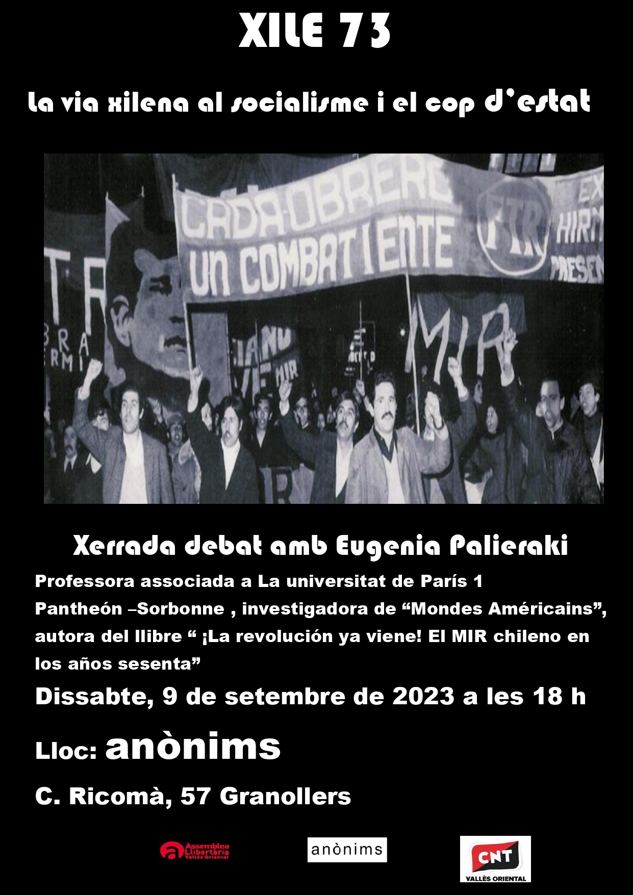 Amb Eugenia Palieraki, professora associada a La universitat de París 1 Pantheón –Sorbonne , investigadora de “Mondes Américains”, autora del llibre “ ¡La revolución ya viene! El MIR chileno en los años sesenta”