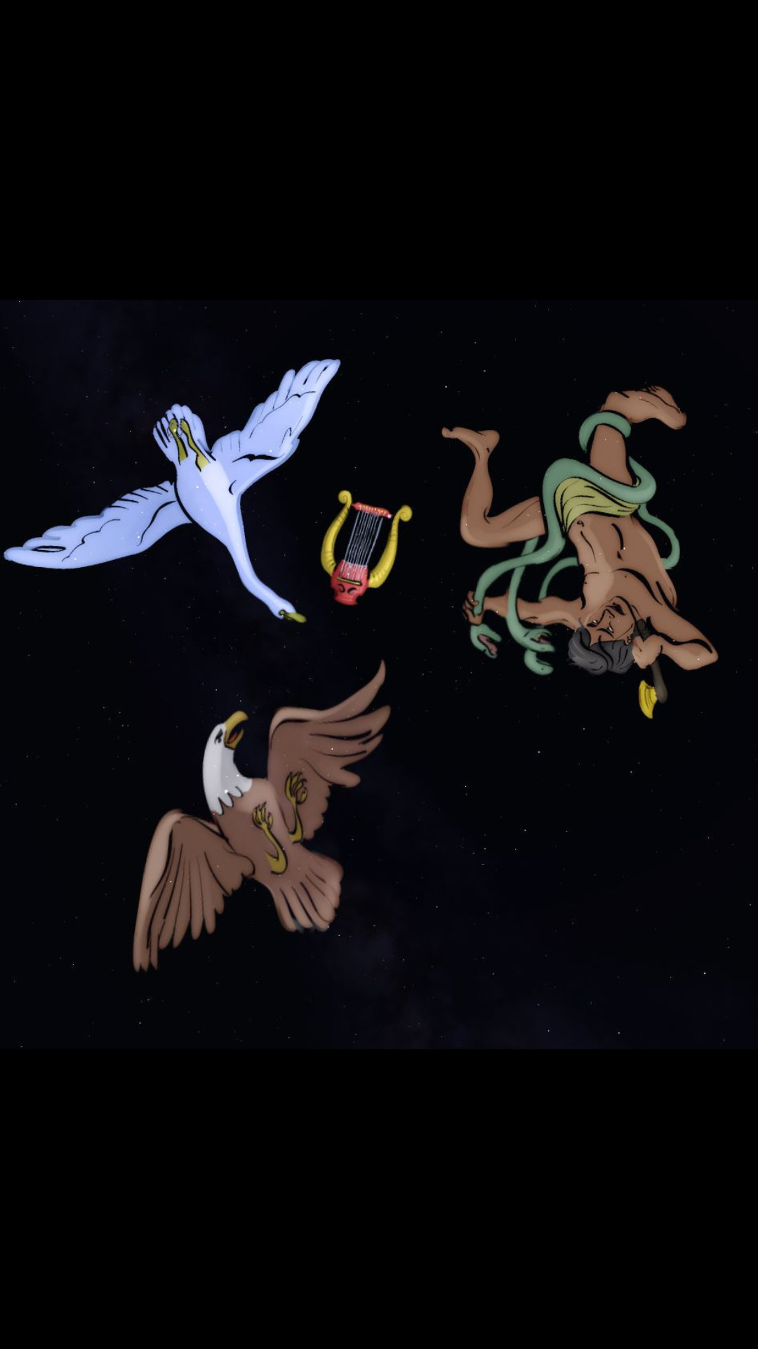 A finals d'estiu encara podem veure en el cel el valerós Hèrcules que es va fer amic de la princesa Galatea i que la va ajudar a fugir d'un ferotge i horrible gegant deformat. No gaire lluny de les constel·lacions que representen aquests personatges ens esperen els planetes Júpiter i Saturn.