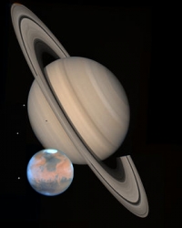 Mart s’aproxima enguany a 75 milions de quilòmetres de la Terra, fet que el fa lluir força més que el llunyà Saturn. El seu inconfusible color vermellós rivalitza amb l’estrella Antares (Anti-Mart). Farem una curta estada a la superfície de Mart, abans de continuar cap a Saturn.