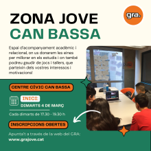 Tens entre 12 i 16 anys? Obrim una zona jove al Centre Cívic de Can Bassa el pròxim 4 de març!