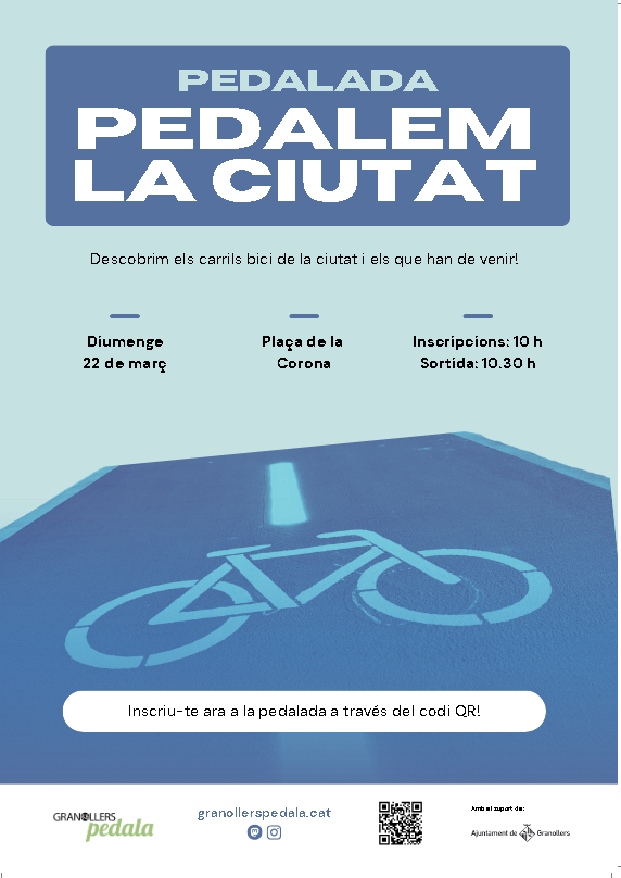 La pedalada "Pedalem la Ciutat" et convida a conèixer els carrils bici de la nostra ciutat, amb un recorregut pensat per tots els públics. L’activitat inclou una ruta guiada pels nous i futurs carrils bici de Granollers, una manera divertida i saludable de descobrir la ciutat en bicicleta