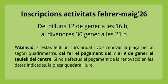 Cal inscripció prèvia adreçant-se directament al Centre Cívic Jaume OllerCentre Cívic Jaume Oller
