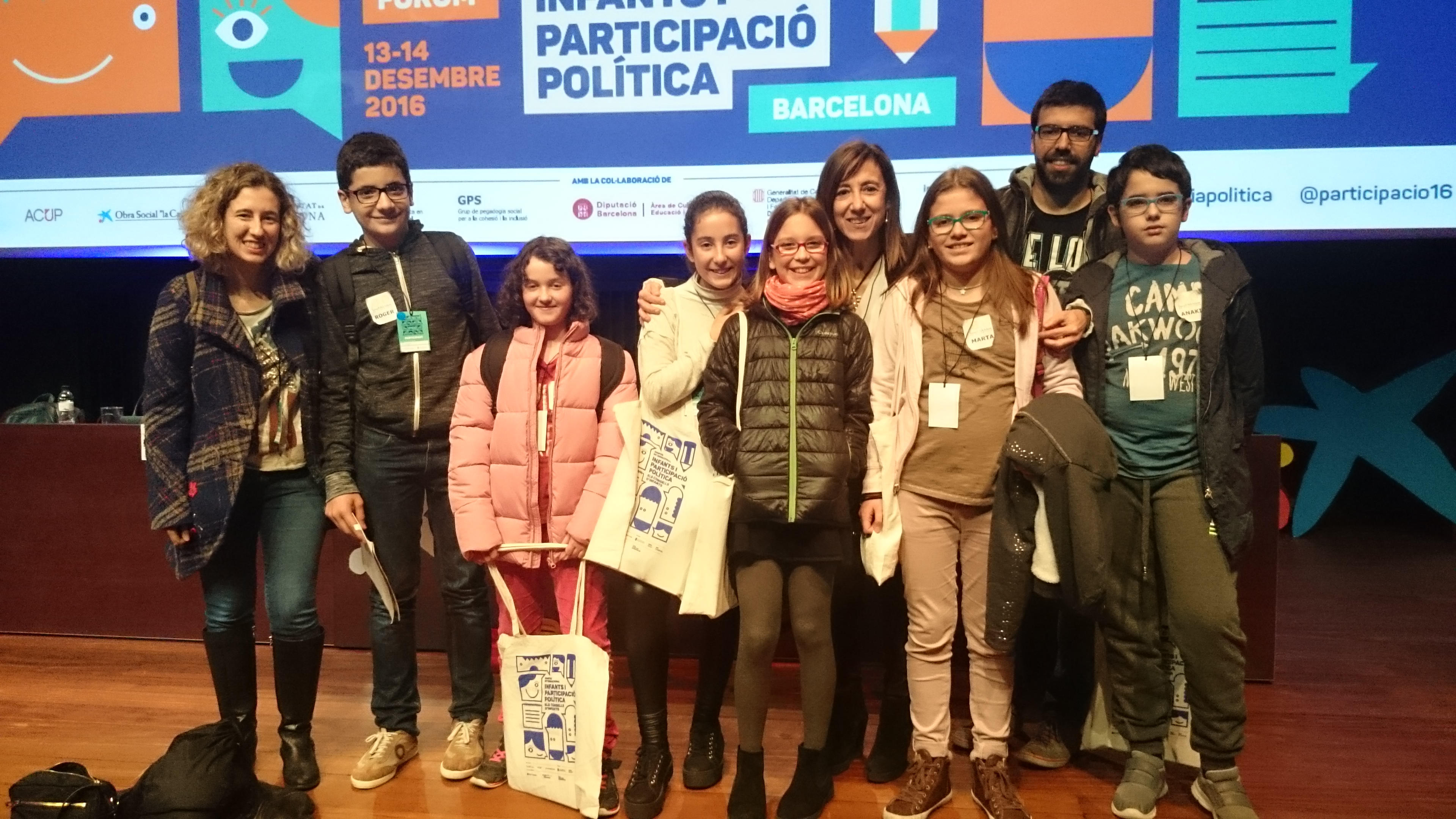 El 13 de desembre hi vam anar el Roger, ex representant del Salvador Espriu que ara ja està a secundària, la Marta de l'Escola Pia, la Carlota del Granullarius, l'Anaki del Ponent, la Bruna del Jardí i la Ona del Lledoner. El Roger, la Marta i la Ona vam explicar a tots els assistents el nostre projecte per fer un consell i una ciutat APTE per a infants. L'endemà, el 14 de desembre hi vam anar l'Abril del Salvador Espriu i el Josep del Salvador Llobet.