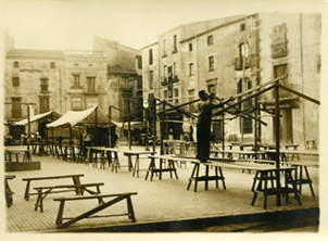Muntant les parades a la plaça de la Porxada, 1934. Autor: Pau Fort / Col·lecció Josep Garrell / AMGr