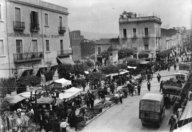 Mercat a la plaça de les Olles, anys 30. Autor desconegut / Col·lecció Josep Garrell / AMGr