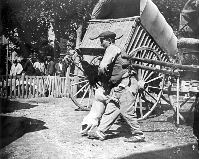Mercat dels porcs a la plaça de Perpinyà, anys 30. Autor desconegut / Col·lecció Josep Garrell / AMGr
