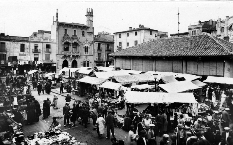 Mercat a la plaça de Maluquer i Salvador, anys 10. Autor Joan Canal / Col·lecció Ajuntament de Granollers / AMGr