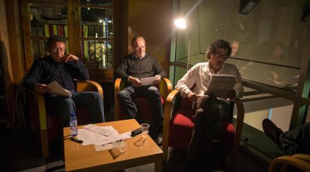 L'immens espectacle de versos que va acollir la Biblioteca, ideat pel poeta granollerí Esteve Plantada, es va desenvolupar en diferents espais de l'equipament, que van esdevenir escenaris on es van viure els versos i els textos i també es va gaudir de cançons, sons i imatges amb l'obra de l'autor de Sinera com a protagonista. Així, la revetlla va esdevenir un recorregut pels temes espriuans - el poble, la llibertat, el temps, la mort... - amb la paraula com embolcall.