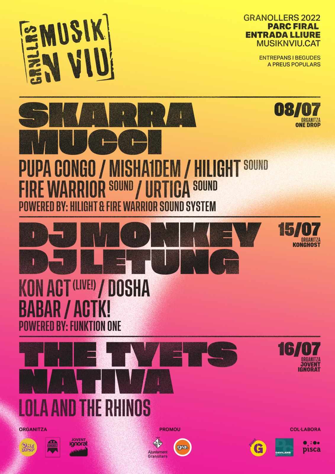 El 8, 15 i 16 de juliol el Parc Firal es convertirà en l’escenari de la 17a edició del Musik N Viu, amb Skarra Mucci, DJ Monkey i DJ Letung, The Tyets i Nativa com a caps de cartell.