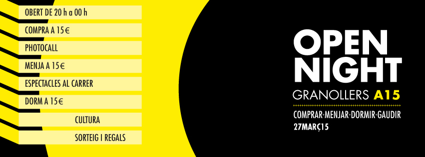 Divendres 27 de març Granollers celebra la quarta edició de l’Open Night, un esdeveniment que convida a comprar, sopar i pernoctar, tot a 15 €. Organitzat per Gran Centre, el Gremi d’Hostaleria del Vallès Oriental i l’associació Hotels Vallès Oriental, amb la col·laboració de l’Ajuntament de Granollers, l'esdeveniment pretén promoure el comerç de proximitat i els sectors gastronòmic i hoteler.
