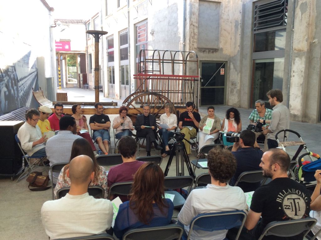 +Representants de les entitats que participen en la programació; la coordinadora de Roca Umbert, la regidora i l'alcalde, en la presentació d'Obert x Vacances 2014.