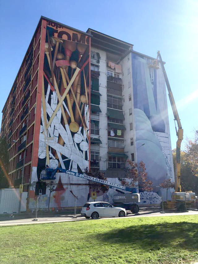 Des de principis de mes de novembre els artistes Zoer&Velvet, juntament amb els alumnes de l'Institut Celestí Bellera i de l'escola Mestres Montaña han treballat el contingut que els artistes estan donant forma en el mur del barri de Can Bassa, que a hores d’ara ja es pot veure part del resultat final.