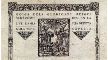 +Coincidint amb la celebració aquesta setmana de Sants Metges, l’Arxiu Municipal difon i posa a l’abast de tothom la seva col·lecció de goigs, integrada per 1.186 exemplars d’aquestes composicions poètiques populars dedicades a la Mare de Déu, a Crist i a diversos sants com els Sants Metges, sant Cosme i sant Damià, que donen nom a la capella del c. Corró.