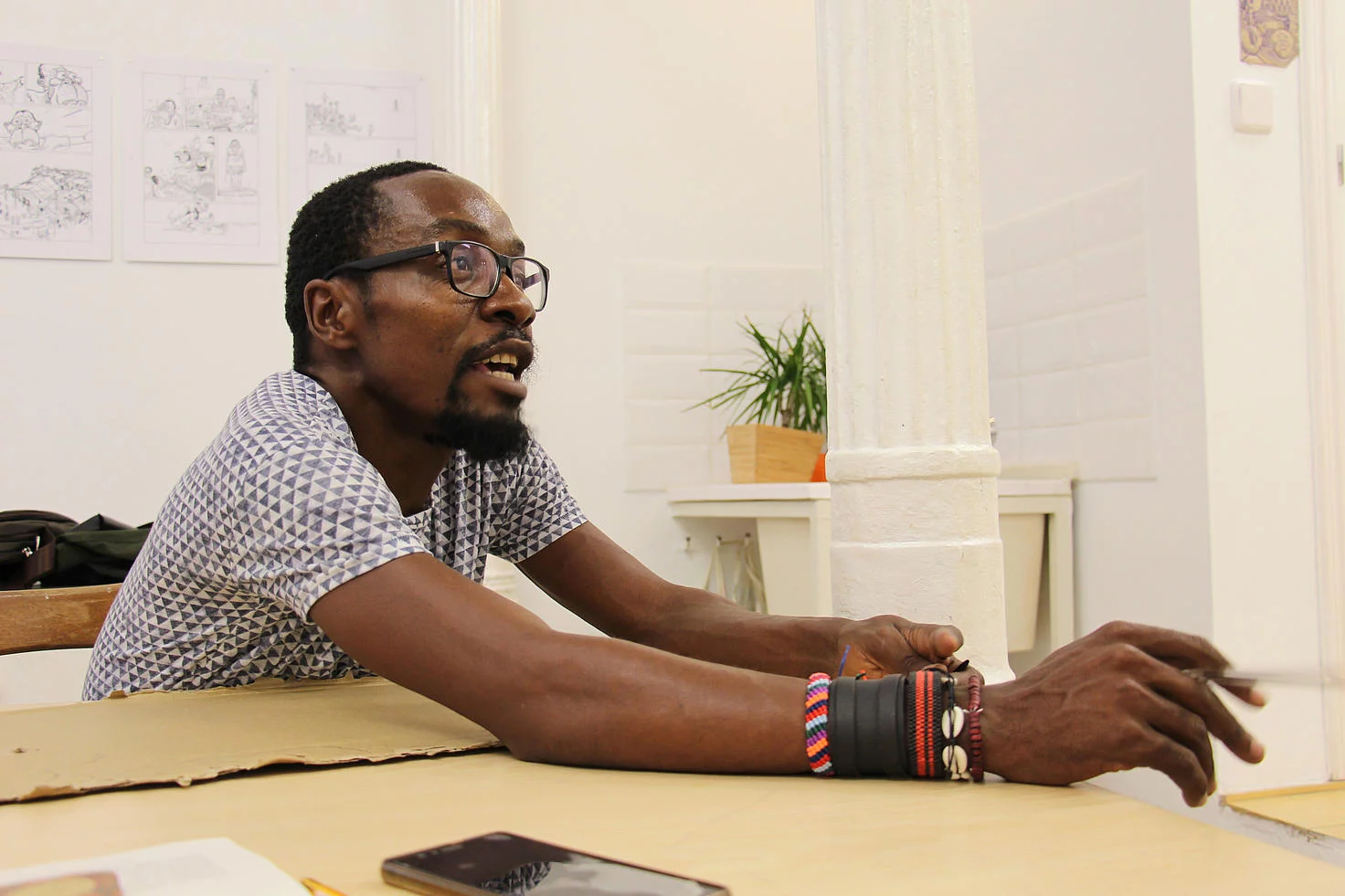 És un dibuixant i il·lustrador compromès amb la denúncia de les vulneracions dels drets humans que es produeixen a Guinea Equatorial.