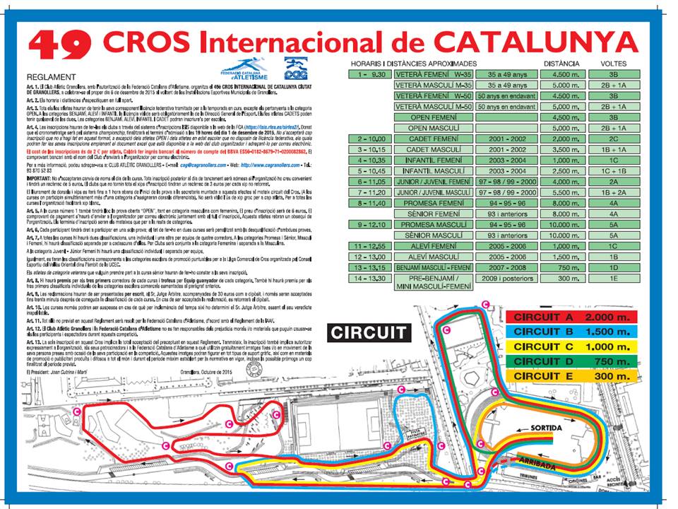 El dia 6 de desembre el Club Atlètic Granollers organitza el 49 Cross Internacional de Catalunya a les Pistes d'Atletisme de Granollers, actualment l'única cursa de cross que compta amb atletes internacionals. Aquest Cross s'engloba dins el Circuit de Cross de la Real Federación Española de Atletismo. Les proves de competició començaran a les 9'30 h fins a les 14 h. La cursa de categoria sènior femení es disputa a les 11.40 h i els sènior masculí a les 12.10 h.