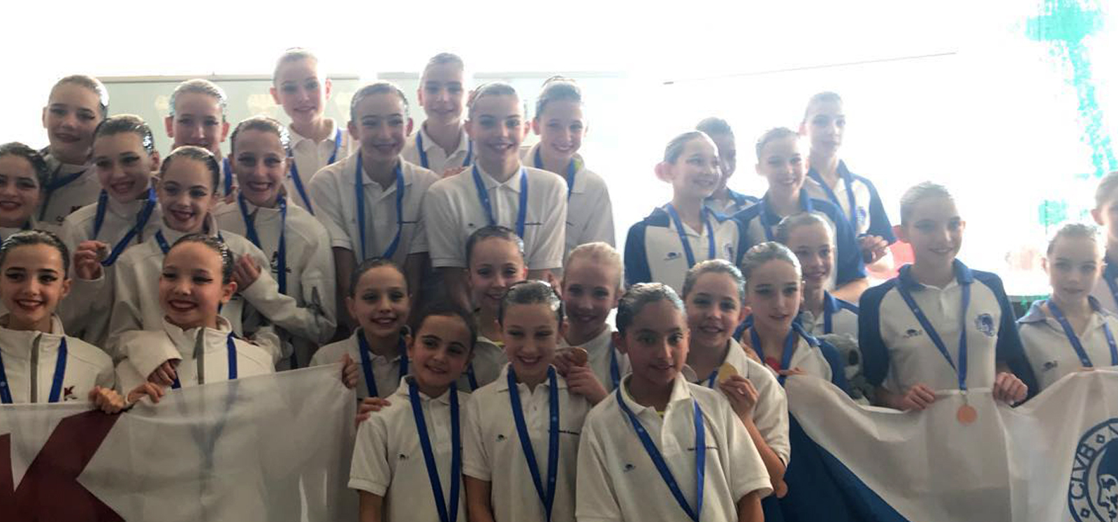 Les alevins van sumar, amb la seva actuació, 66,5 punts que les va fer pujar al primer esglaó de podi, compartit amb el CN Kallipolis, plata amb 66,1 punts, i el CN Sabadell, bronze amb 65,3 punts. El CNG va presentar un segon equip, que es va quedar a les portes de penjar-se medalla, en classificar-se en una meritòria 4a posició.