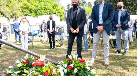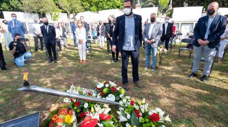 Un emotiu acte a càrrec de representants de la Generalitat, alcaldes i alcaldesses de diversos municipis, familiars i ciutadania que han fet una ofrena floral al monument dedicat a les víctimes innocents de les guerres.