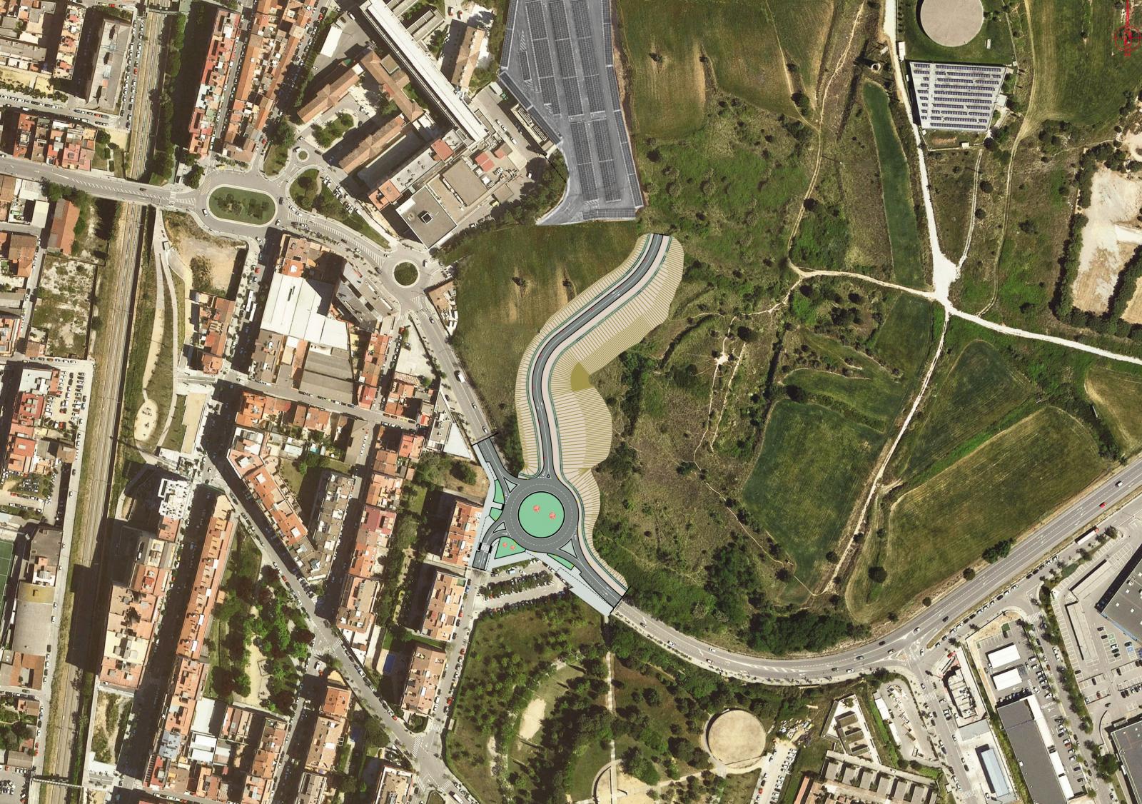 De la rotonda en sortirà el nou vial en sentit nord, que en una primera fase arribarà fins al pàrquing situat la zona posterior del nou edifici hospitalari que s’està construint; i en una segona fase arribarà fins al carrer del Terme, al barri de Bellavista.
