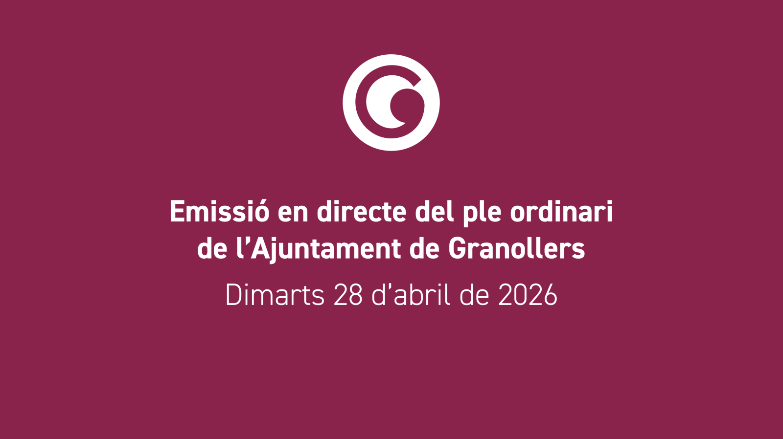 +El ple d'aquest mes se celebrarà dimarts 28 d’abril, a les 19.30 hores, a la Sala de Plens.
