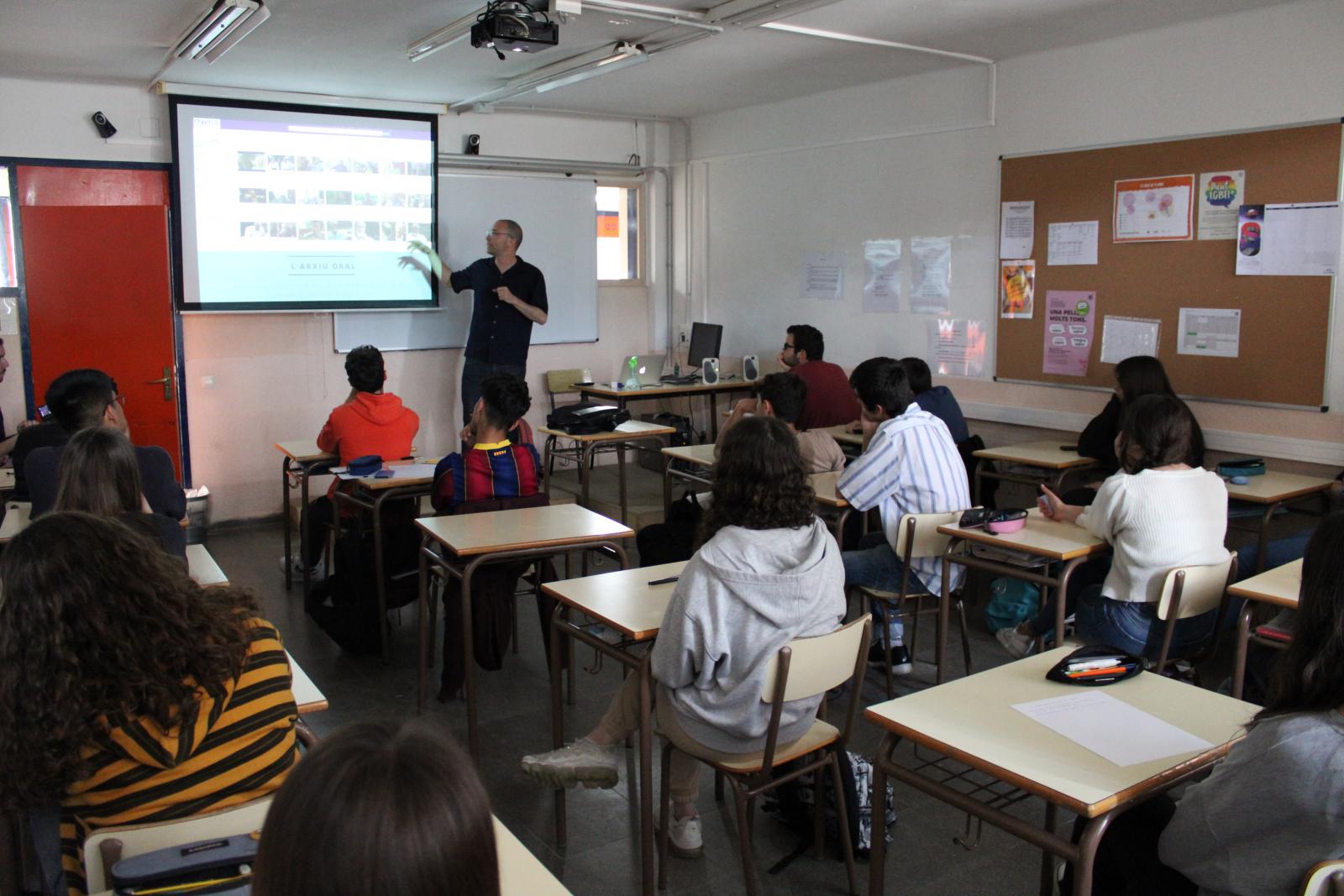 Albert Forns visita els alumnes de 4t d'ESO de quatre instituts de la ciutat (EMT, Carles Vallbona, Antoni Cumella i Marta Estrada) per compartir la memòria del bombardeig a partir de la projecció de fragments de les entrevistes realitzades fins al moment. La sessió permet descobrir diverses vivències del bombardeig, fins ara força desconegudes, explicades pels seus protagonistes, i debatre amb l’alumnat sobre la importància de la memòria oral per establir el relat quotidià de grans fets històrics.