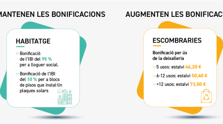 Una altra mesura que afecta l’àmbit de l’habitatge és la bonificació de l’IBI a aquells blocs de pisos que posen plaques solars, que també s’ha començat a aplicar aquest any i que es manté en les noves ordenances. L’any 2025, 7 comunitats de veïns s’han beneficiat d’aquestes bonificacions, una més que l’any 2024.