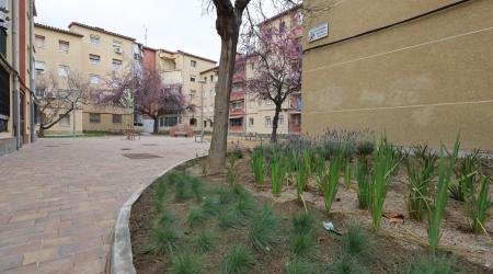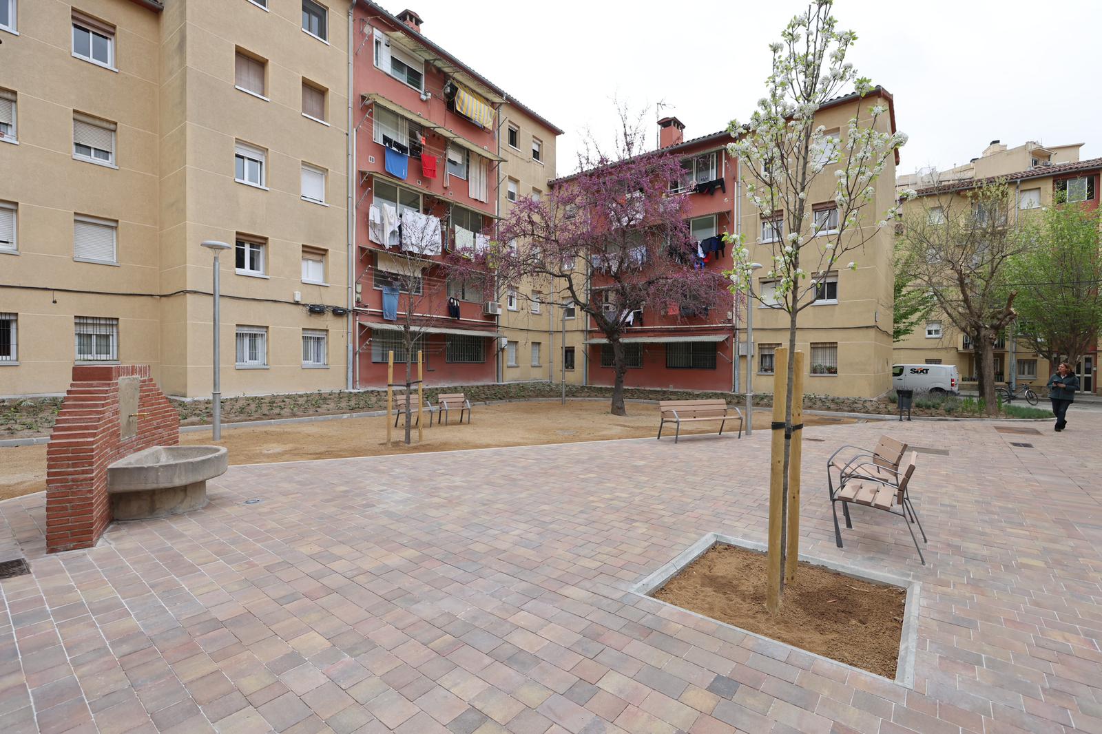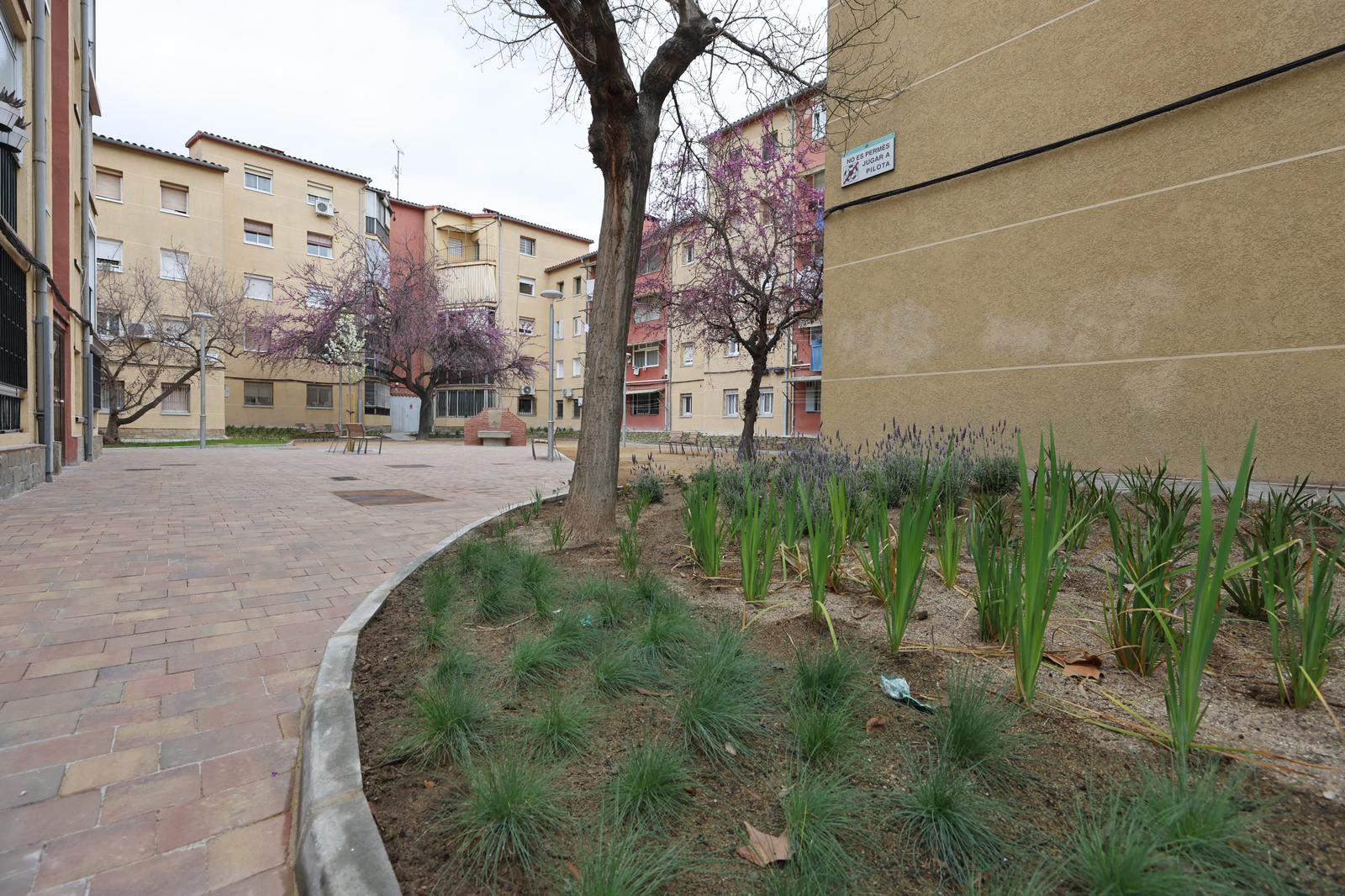 La plaça, situada a l'interior d’una illa d’habitatges entre els carrers de Roger de Flor, Pius XII, Navarra i Roger de Llúria, al barri de Sota el Camí Ral, ha renovat l’enllumenat i el paviment i ha incrementat la superfície de sòl permeable per afavorir l’aprofitament de les aigües pluvials. També s’ha ampliat la zona de vegetació, s’han plantat dos arbres i s’ha instal·lat un nou sistema de reg. Així mateix, durant el transcurs de les obres, s’ha aprofitat per renovar la xarxa de clavegueram.