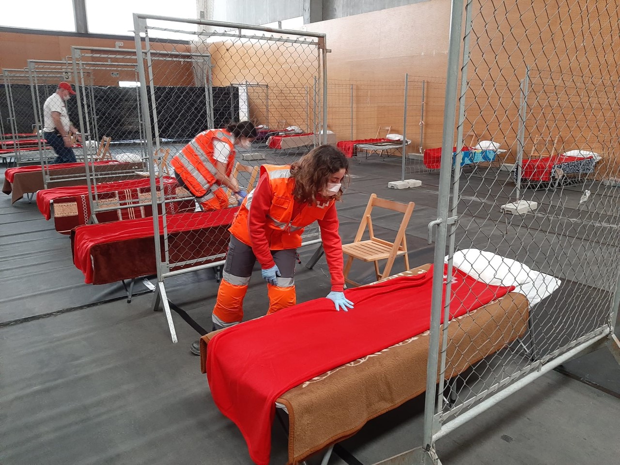 En el vestíbul del Pavelló s'hi ha habilitat la zona de menjador, mentre que en la pista de joc s'hi han col·locat els llits, on dormiran els homes, mentre que les dones disposaran dels vestidors per dormir-hi. A més també hi ha un espai de bugaderia, amb rentadora i assecadora.