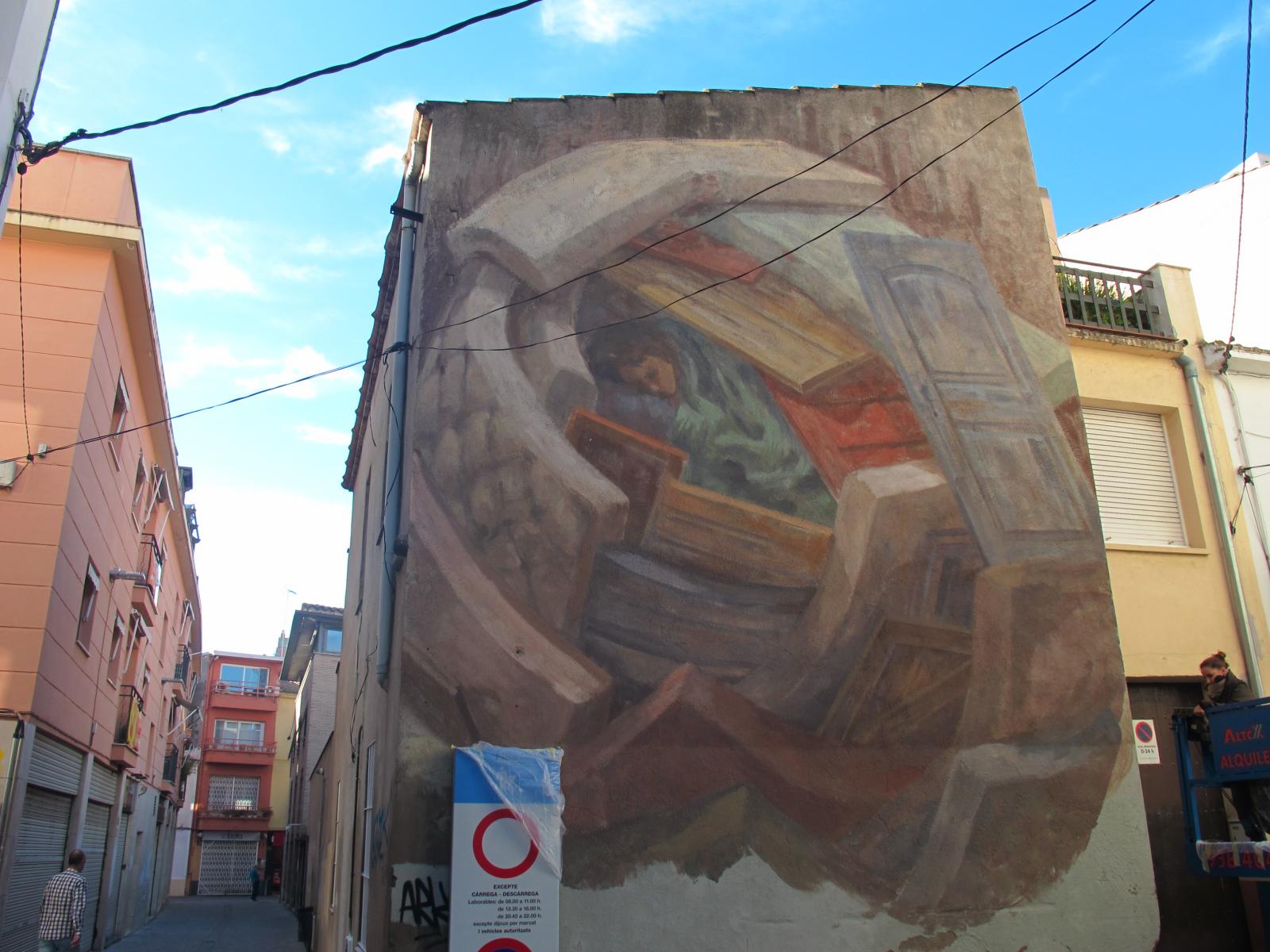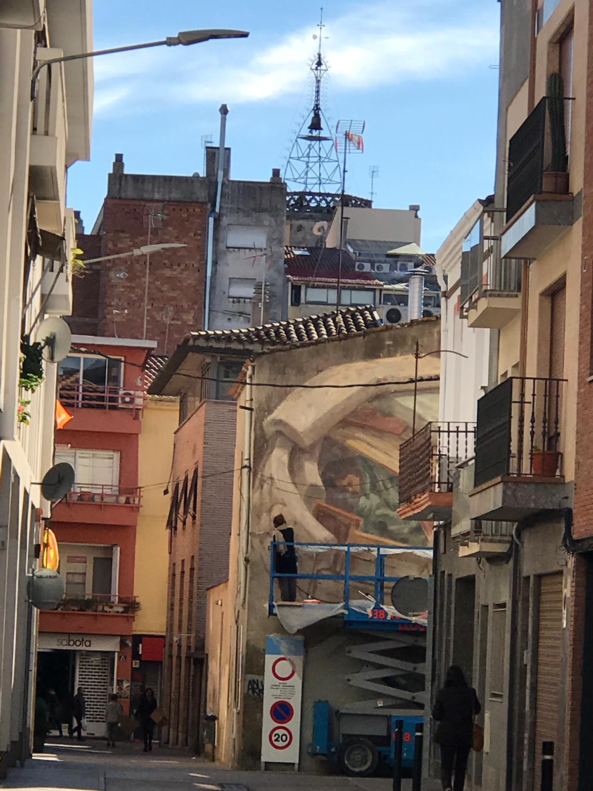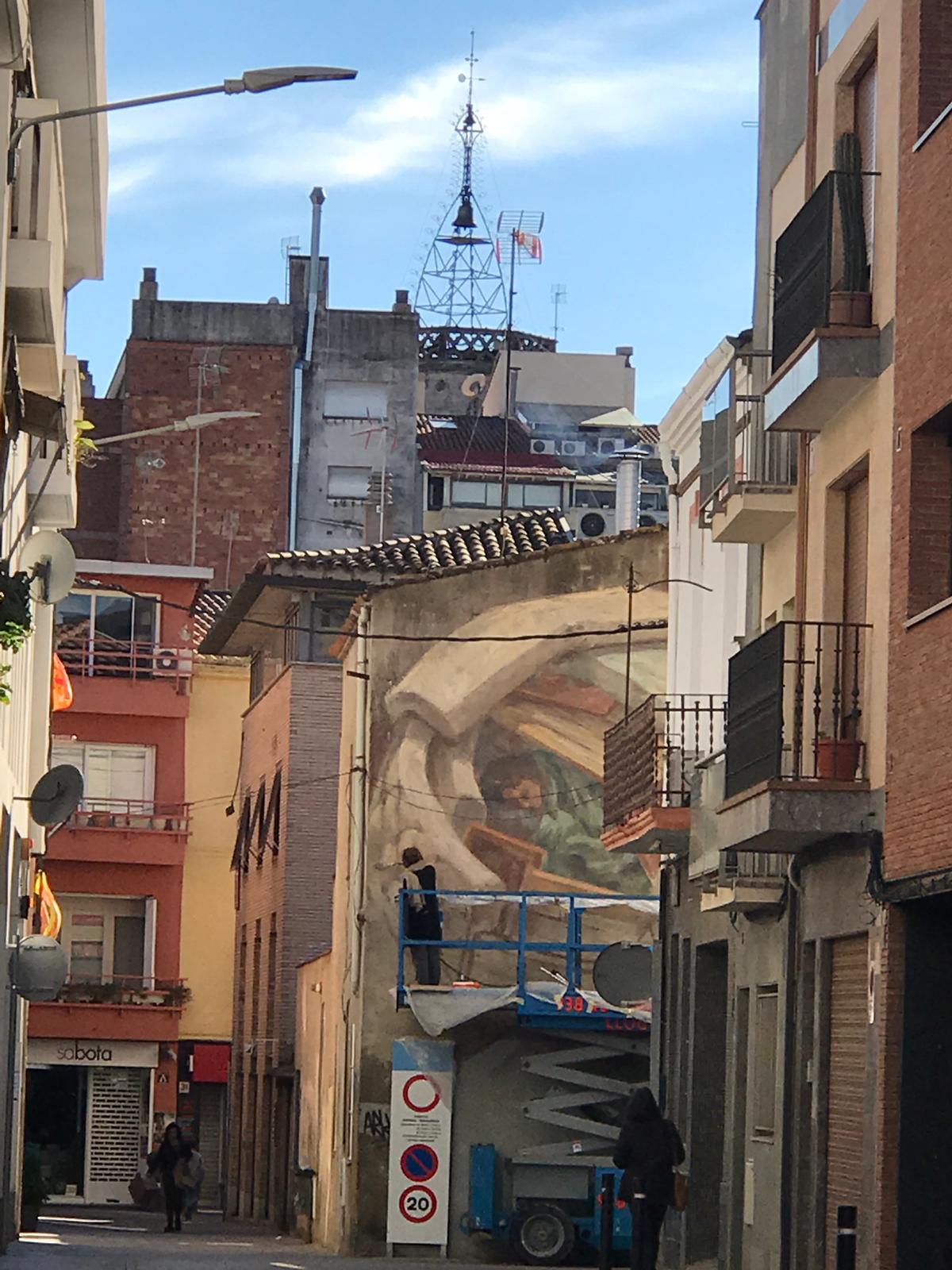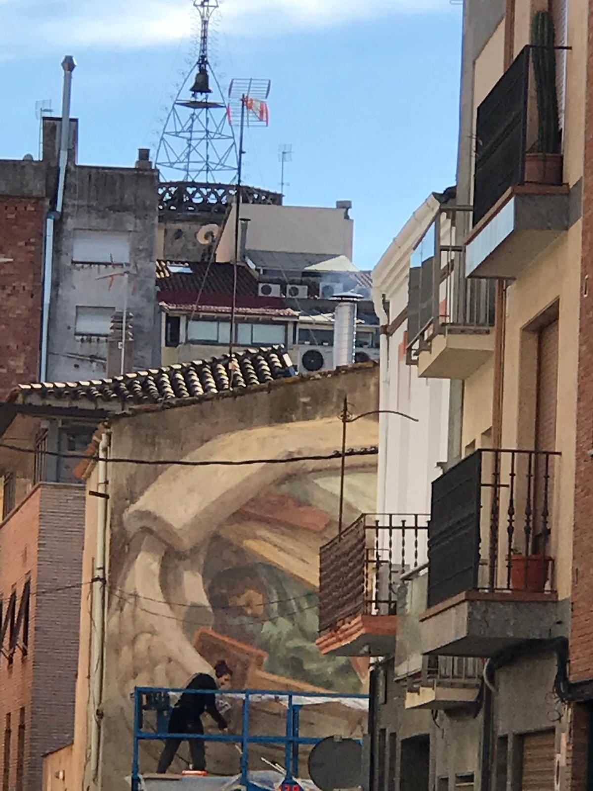 +L’artista Cinta Vidal ha començat a pintar un mur inspirant-se en el concepte de refugi. La producció s’ha iniciat aquesta setmana i acabarà, si les condicions meteorològiques ho permeten, aquest divendres. Els vianants podran veure com pinta el mural que està a la cantonada del carrer de Catalunya amb el carrer de la Muralla. La intervenció artística és fruit d'un procés participatiu recollint les aportacions de la cinquantena de participants de l’activitat “A refugi!”. A principis d'octubre es va fer un itinerari per quatre espais de la ciutat convidant als participants a compartir quina és la seva idea de refugi. I el resultat és aquest mur que va prenent forma.
