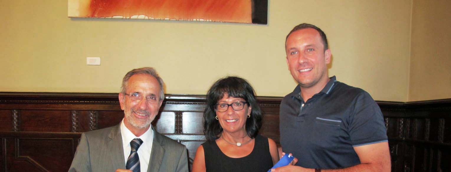 +L'atleta granollerina Àngels Noell, entre l'alcalde de Granollers, Josep Mayoral, i el regidor d'Esports, Àlvaro Ferrer