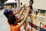 A la tarda, a partir de les 17.30 h, a la mateixa plaça seran els alumnes de l'Escola d'Adults i dels Centres Oberts de la ciutat que participaran de l'activitat, col·locant el maó amb el seu desig de pau a les estructures. Tothom que vulgui podrà decorar el seu maó i deixar-lo. D'aquesta manera, al voltant de les 18 h es podrà veure la construcció col·lectiva que forma l'activitat Construïm la pau.
