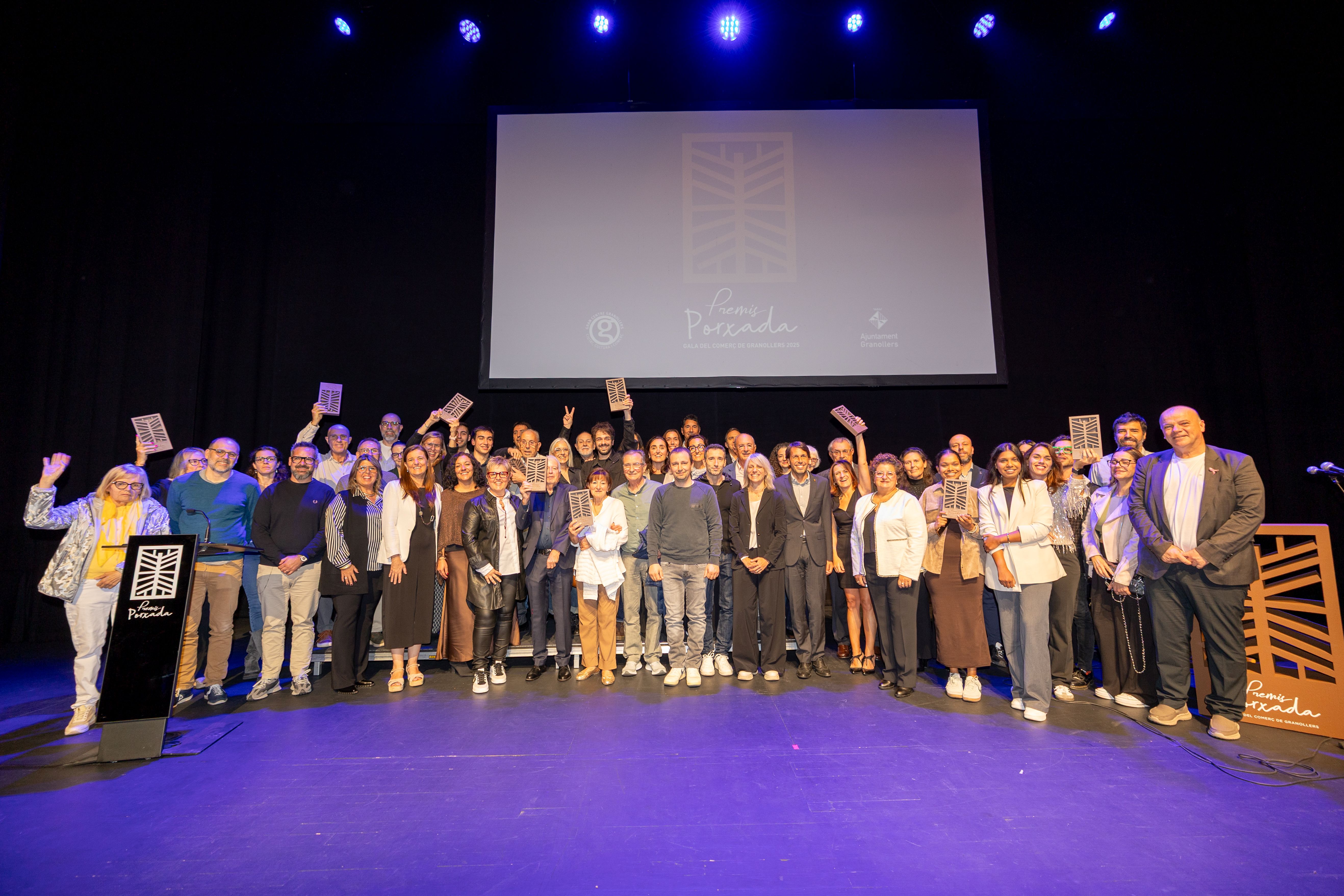 Foto de grup dels guardonats a la segona edició dels Premis Porxada (Foto: J. Ribó)