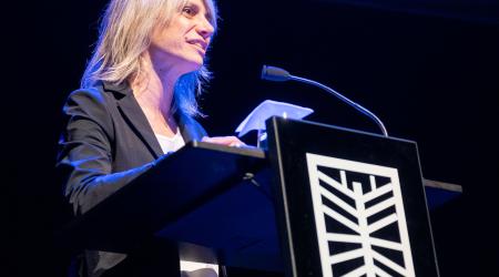 Elena Gadel, presentadora de la segona Gala del Comerç i entrega dels Premis Porxada (foto: J. Ribó)