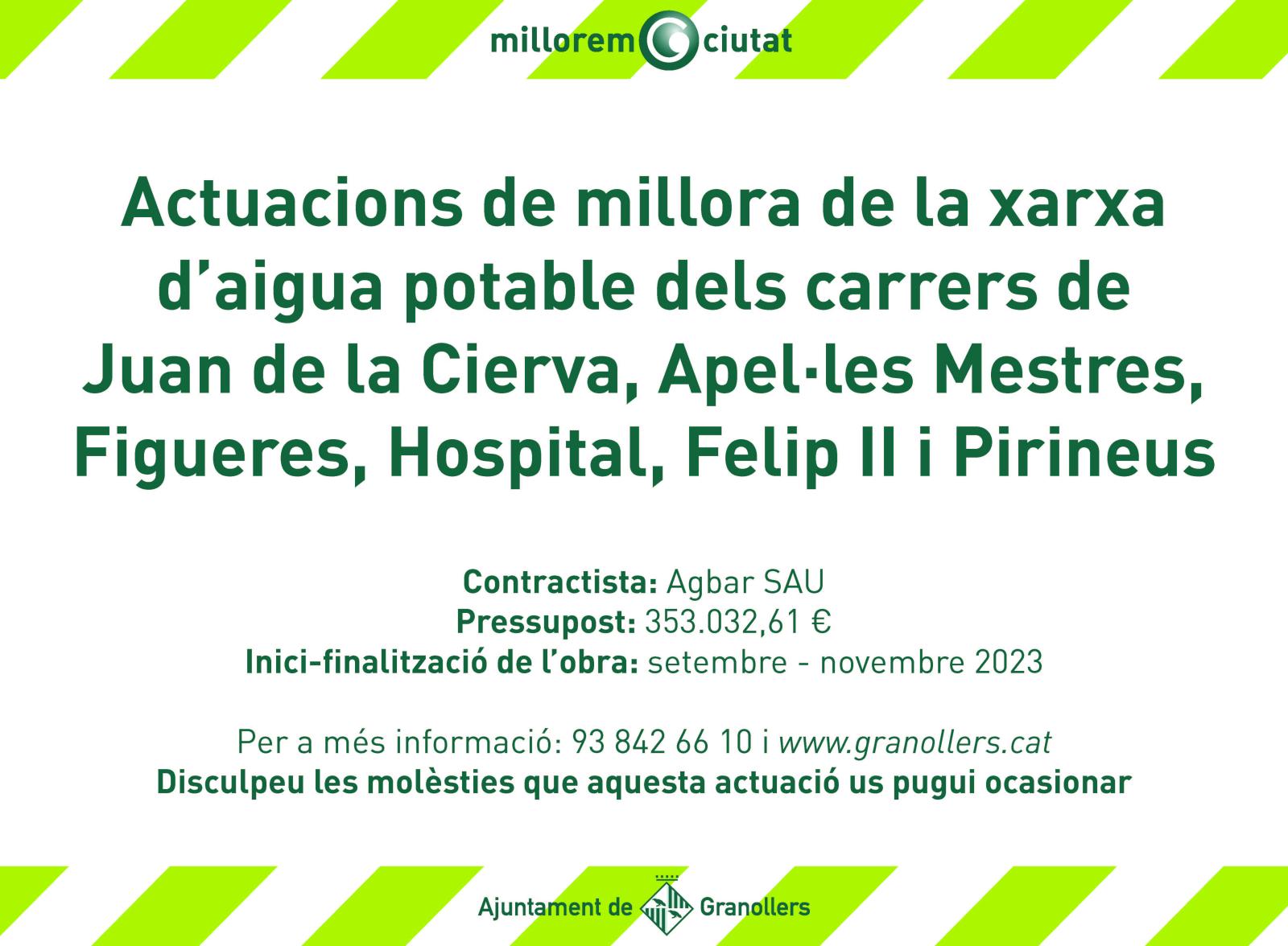 S’han iniciat els treballs de renovació de les canonades del carrer Juan de la Cierva i dels carrers propers, Felip II, Hospital, Figueres, Apel·les Mestres i Pirineus, en una nova actuació executada per Agbar, l’empresa concessionària del servei d’aigua potable de Granollers. Tot, amb l’objectiu d’incrementar l’eficiència de la xarxa i solucionar les incidències en el subministrament d’aigua en la zona.